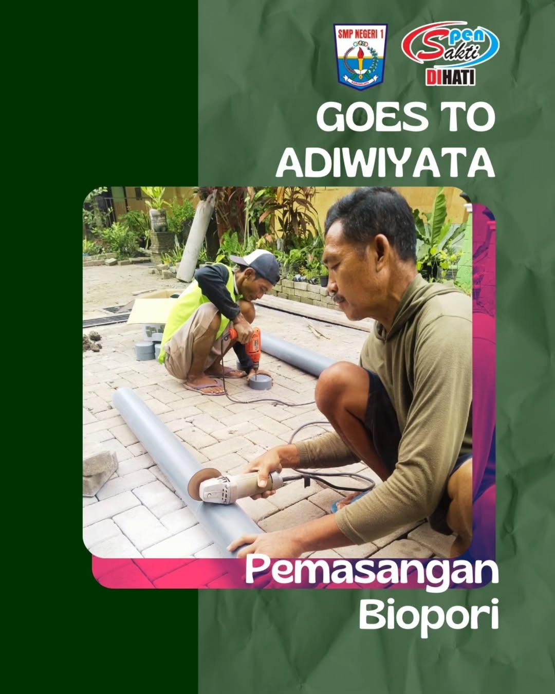 Halo sobat Spensakti, kali ini SMPN 1 Karangjati sedang dalam proses untuk memasang 63 titik Biopori yang akan ditempatkan di seluruh wilayah sekolah.Biopori adalah lubang resapan air yang dibuat di dalam tanah untuk mengatasi genangan air dan banjir. Biopori juga dapat digunakan sebagai tempat pembuangan sampah organik Mari sobat Spensakti selalu lestarikan lingkungan